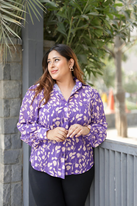 Jessi - Purple Floral Printed Loose Fit Shirt